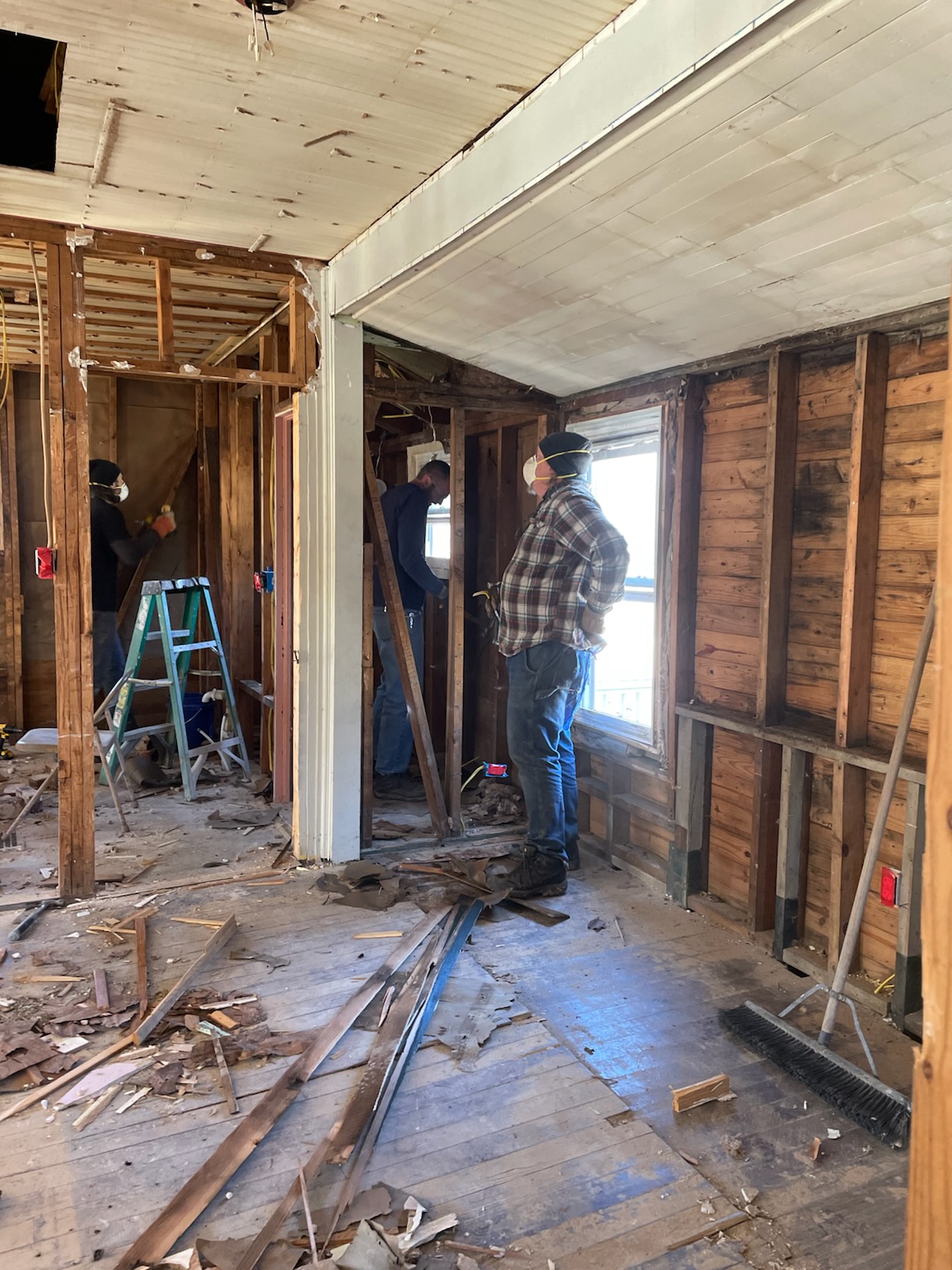 @riverlifefellowship brought a group to a home we are rebuilding for a dear family in our community. They knocked out walls and ceiling tiles that were damaged when the flood waters rose.