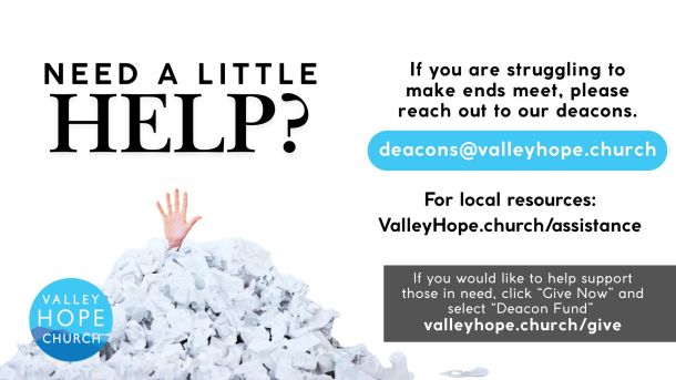 If you need help making ends meet, there are several assistance programs in the area. You can also connect with our deacons to see what help may be available to your through Valley Hope. Follow the link to learn more!