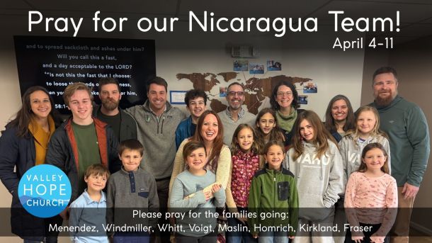Please join us as we pray for our mission team headed to Nicaragua April 4-11!