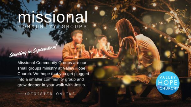 Missional Community Groups are our small groups ministry at Valley Hope Church. This is one of the primary ways we cultivate communities that live out the life-changing hope of Jesus. We hope that you get plugged into a smaller community group and grow deeper in your walk with Jesus.
